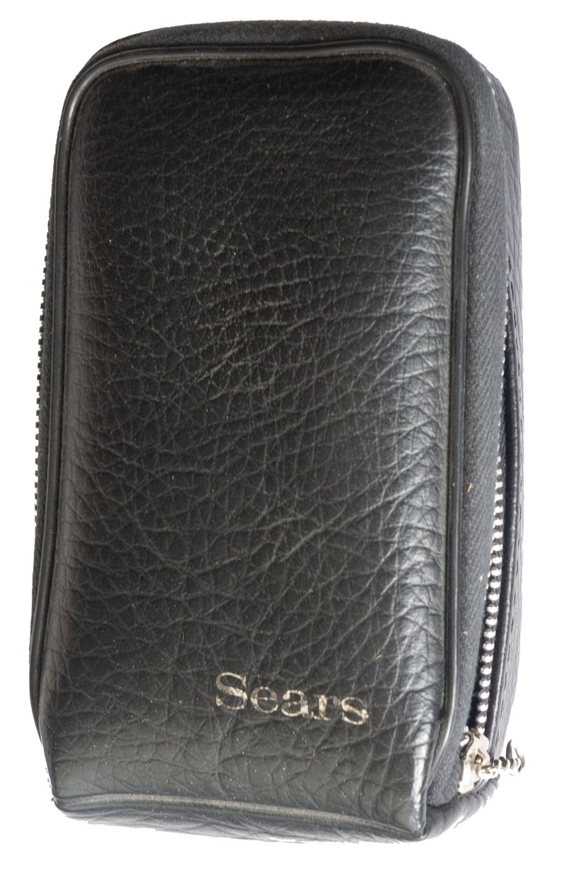 Sears 10m (Model No. 728.5825) (Large Image, Back, Internal, Box, Case) (1974) "Electronic Calculator with Memory and Square Root" sold by Sears, Roebuck and Co. The back plate states at the bottom "Made in USA" although on top of the back plate is an additional sticker that states "Assembled in Mexico." This calculator was originally purchased on July 5, 1975 from Sears for $39.99 according to the original receipt. Adjusting for inflation, that's equivalent to $239.09 in December 2025 dollars. I purchased the calculator with the original box, case and instruction manual on eBay on January 27, 2026 for $4.99 plus tax. Shipping was free! An AC adapter/charger was not included. Inside the calculator has three NiCad batteries which are a bit past their prime after 50 years! I tested the calculator with a temporary battery pack with three AAA NIMH batteries. NIMH batteries have the same nominal voltage as NiCad batteries of 1.2 volts. The measured voltage for the three freshly charged AAA NIMH batteries was 4 volts. The calculator worked with this battery pack attached to the positive and negative terminals inside the calculator. | The calculator, case and box are all in very good condition. The calculator has an "Optostic" red LED display. The calculator has a "large scale integrated circuit" which you can see looking sideways into the back of the calculator. I did not try and pry the circuit board off to view the inside further, however, for fear of damaging the calculator. I'll be on the lookout for another one which I might try and take apart since I have found any internal images on the Internet. Calculator.org and calcuseum.com have brief descriptions of the calculator.